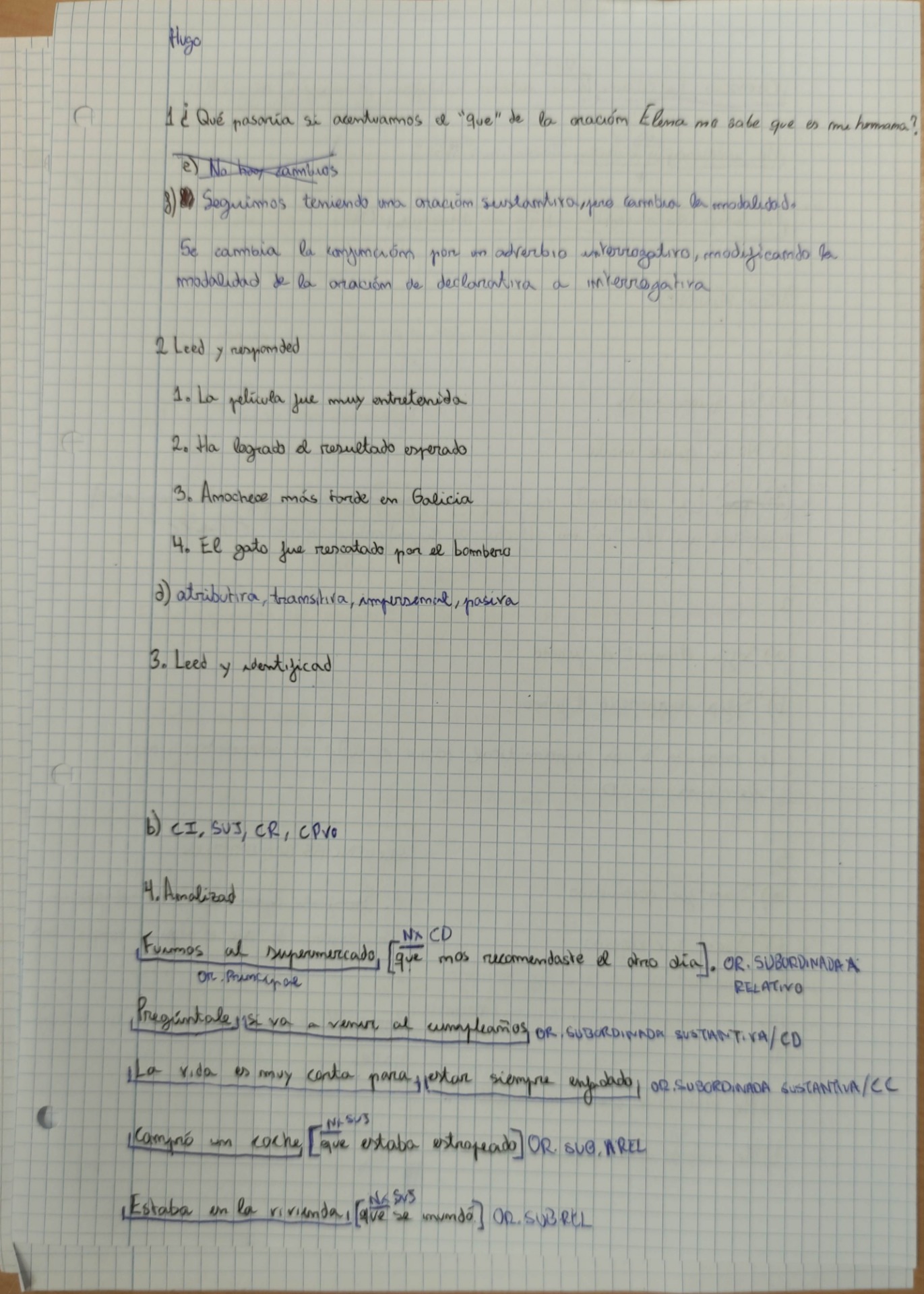 Estas semanas hemos trabajado principalmente las oraciones subordinadas sustantivas, aunque hemos seguido con el libro de lectura y hemos trabajado los valores del "se" y algunas figuras retóricas. Las subordinadas me han parecido un tema muy interesante y sencillo de entender.